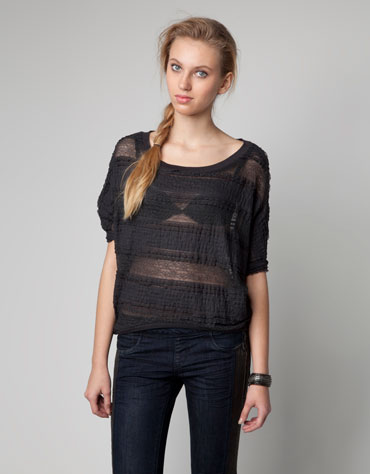 Una camiseta, normalita, oversize, plateada, también la hay negra con destellos verdes, con coderas (ahora pondré otra imagen para que la veáis) Parece de sport, pero, obviamente, no puedes llevar una camiseta plateada de sport... Me costo 22,99€ en Bershka...